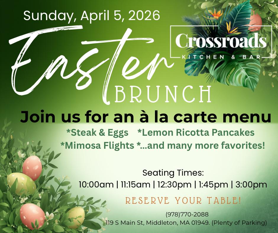 Welcome to Crossroads Kitchen and Bar, a vibrant new addition to Middleton, MA, where cultures converge to create a truly unique dining experience. Crossroads is named for its diverse backgrounds in ownership, taking influence from Asian and Latin flavors. Offering contemporary American cuisine, Crossroads is more than just a restaurant – it is a celebration of cultural diversity and culinary innovation. Join us to embark on a culinary journey where old-world flavors meet modern creativity. Open for brunch, lunch, and dinner, we look forward to serving you at Crossroads.